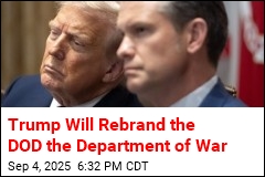 President Trump plans to sign an executive order Friday to rebrand the Department of Defense as the Department of War, his latest effort to project an image of toughness for America's military. The Republican president can't formally change the name without legislation, which his administration would request from Congress. In the meantime, the AP reports that Trump will authorize the Pentagon to use "secondary titles" so the department can go by its original name. The plans were disclosed by a White House official, who requested anonymity ahead of the public announcement, and detailed in a White House fact sheet.