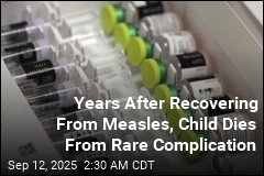 A school-age child has died from a rare complication of measles contracted in infancy, Los Angeles County health officials said Thursday. The child, who had been too young to be vaccinated when they were infected by the virus, died of subacute sclerosing panencephalitis, according to the county health department. The incurable disorder causes progressive brain damage and is nearly universally fatal, the AP reports. About 1 in 10,000 people who get measles develops the disorder, but the risk is 1 in 600 for infants. The child initially recovered from measles, then developed SSPE years later, NBC News reports.