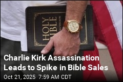 US | Charlie Kirk Charlie Kirk Assassination Leads to Spike in Bible Sales They rose 36% in September, compared to previous year By John Johnson withNewser.AI Posted Oct 21, 2025 7:59 AM CDT Copied A man holds a Bible at a memorial for conservative activist Charlie Kirk, Sunday, Sept. 21, 2025, at State Farm Stadium in Glendale, Ariz. (AP Photo/Jae C. Hong) Bible sales in the US spiked in September following the fatal shooting of conservative activist Charlie Kirk, reports the Wall Street Journal. According to Circana BookScan, Americans bought 2.4 million Bibles that month—a 36% increase over September of last year and the highest monthly total so far in 2025. Through the first nine months of the year, Bible sales were up 11%, compared to a 1% decline in overall print book sales in the US. The stats suggest that while Bible sales were already on the rise, the Kirk shooting "awakened a lot of people," said Mark Schoenwald, president and chief executive of HarperCollins Christian Publishing. That was especially true for the 18-34 age group, he added. "They started to think about what they believe and why." Sales of study guides also rose, suggesting readers were interested in both the text and its application. Quartz notes that the numbers don't reflect another Bible on the market: a version being endorsed by President Trump that includes lyrics to Lee Greenwood's "God Bless the USA." Read These Next A former NFL Pro Bowler has died at age 36. The massive AWS failure exposed a big problem with the internet. Backlash for Trump nominee who said he has 'a Nazi streak.' A man ended up dead after trying to steal from Spirit Halloween. Report an error