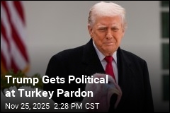 Politics | turkey Trump Gets Political at Turkey Pardon He says he's declared Biden's turkey pardons 'totally invalid' By Newser Editors and Wire Services Posted Nov 25, 2025 2:28 PM CST Copied President Trump and first lady Melania Trump, stand next to national Thanksgiving turkey Gobble during a pardoning ceremony in the Rose Garden of the White House, Tuesday, Nov. 25, 2025. (AP Photo/Julia Demaree Nikhinson) See 5 more photos President Trump didn't bring much holiday cheer Tuesday when bestowing ceremonial pardons on two Thanksgiving turkeys, dispensing more insults than goodwill at the traditional White House ritual. He joked about sending the turkeys to an infamous prison in El Salvador that has been used to house migrants deported from the United States, the AP reports. He said the birds should be named Chuck and Nancy—after Democratic stalwarts Chuck Schumer and Nancy Pelosi—but "I would never pardon those people." Trump claimed he had declared last year's turkey pardons, issued by Joe Biden, "totally invalid" because he used an autopen. "Where's Hunter?" he said, suggesting that his predecessor's son could once again face legal jeopardy. During the first turkey pardon of his first term, Trump joked about overturning Barack Obama's turkey pardons. And all of that was before Trump turned his attention to Illinois Gov. JB Pritzker, a Democrat who has resisted the White House's plans to deploy the National Guard in Chicago. Trump said he had a joke prepared about Pritzker, but "I refuse to talk about the fact that he's a fat slob. I don't mention it." Newsweek reports that Trump also joked about his own weight, saying, "I'd like to lose a few pounds too, by the way, and I'm not going to lose it on Thanksgiving." He added: "I can tell you that, because I'm going to have a turkey, but it's not going to be that one." Trump eventually got around to the business at hand, which was pardoning the turkeys Gobble and Waddle. Both were spared the dinner table, but only one got the spotlight. "Gobble, I just want to tell you this—very important—you are hereby unconditionally pardoned," Trump said. He reached over to run his hand over the feathers, saying, "Who would want to harm this beautiful bird?" Waddle had previously been spotted in the White House briefing room. "Waddle, want to give us a gobble?" White House press secretary Karoline Leavitt asked. The turkey obliged. "Very on message!" Leavitt said. Trump used part of his ceremonial remarks to insist that the price of Thanksgiving meals was dropping under his leadership, although his numbers are misleading, the AP notes. Some research indicates that holiday dinners could cost more this year, a reminder of persistent frustration with inflation. Both pardoned birds will be sent to North Carolina State University's Prestage Department of Poultry Science, NBC News reports. The Hill notes that Trump's latest turkey pardon was in 2020, during the pandemic, with social distancing measures in place. In one of his first public appearances since the election earlier that month, he didn't address his defeat but praised progress with vaccines. Read These Next 'Putin wants legal recognition to what he has stolen.' Man was planning cremation for his sister, who turned out to be alive. Mom allegedly passed 31 hospitals on road trip as daughter was dying. Tara Reid taken out of Chicago-area hotel on a stretcher. See 5 more photos Report an error