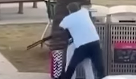 The death toll from Sunday's mass shooting in Australia might be higher if not for an unidentified bystander who decided to get involved. Dramatic video—see a version from Australia's 9News—shows the man wrestling the gun away from one of the shooters. As the Guardian reports, the bystander had been crouching behind a parked car when he snuck up behind the firing gunman and overpowered him. The bystander gets the gun and points it at the shooter, who backs away.